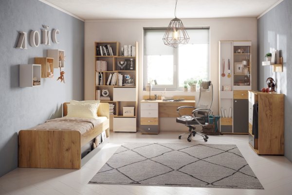Декоративный куб в декорах Белый, Дуб Золотистый и Графит с белой задней стенкой можно использовать как навесную полку для книг и для декорирования интерьера. Куб 1 - оригинальное решение для декора комнаты подростка.