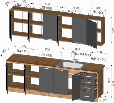 Шкаф верхний: 800х705х300 мм