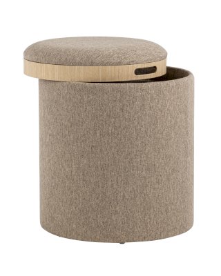 Мягкий пуф с ящиком станет незаменимым украшением интерьера. Он не только удобный, но и функциональный. Благодаря двухсторонней крышке, пуф можно трансформировать в журнальный столик. Столешница выполнена из светлого дерева с бортиками по краям и вырезными ручками для удобства, и безопасности при использовании. Крышка пуфика полностью съемная и при необходимости её можно использовать как поднос. Полезное дополнение - ящик для хранения различных мелочей, внутри обит тканью. Компактный и вместительный, такой пуфик наполнит пространство особым уютом и теплом. Подойдет для любого интерьера - как в классическом стиле, так и в современном.
