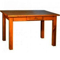 Прямоугольный стол 120х70 с ящиком для столовых приборов выполнен в деревенском стиле Прованс из массива дерева. Прочная, надежная конструкция на каждый день. Столешница с нижним царговым поясом установлена на четыре квадратные ножки. Стол отлично будет смотреться и в столовой, и в гостиной, в квартире и на даче.